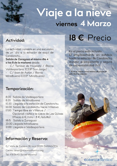Océano Atlántico ha organizado una excursión el día 4 de Marzo, aprovechando que los niños no tienen colegio, para todos los que quieran pasar un día en la nieve.