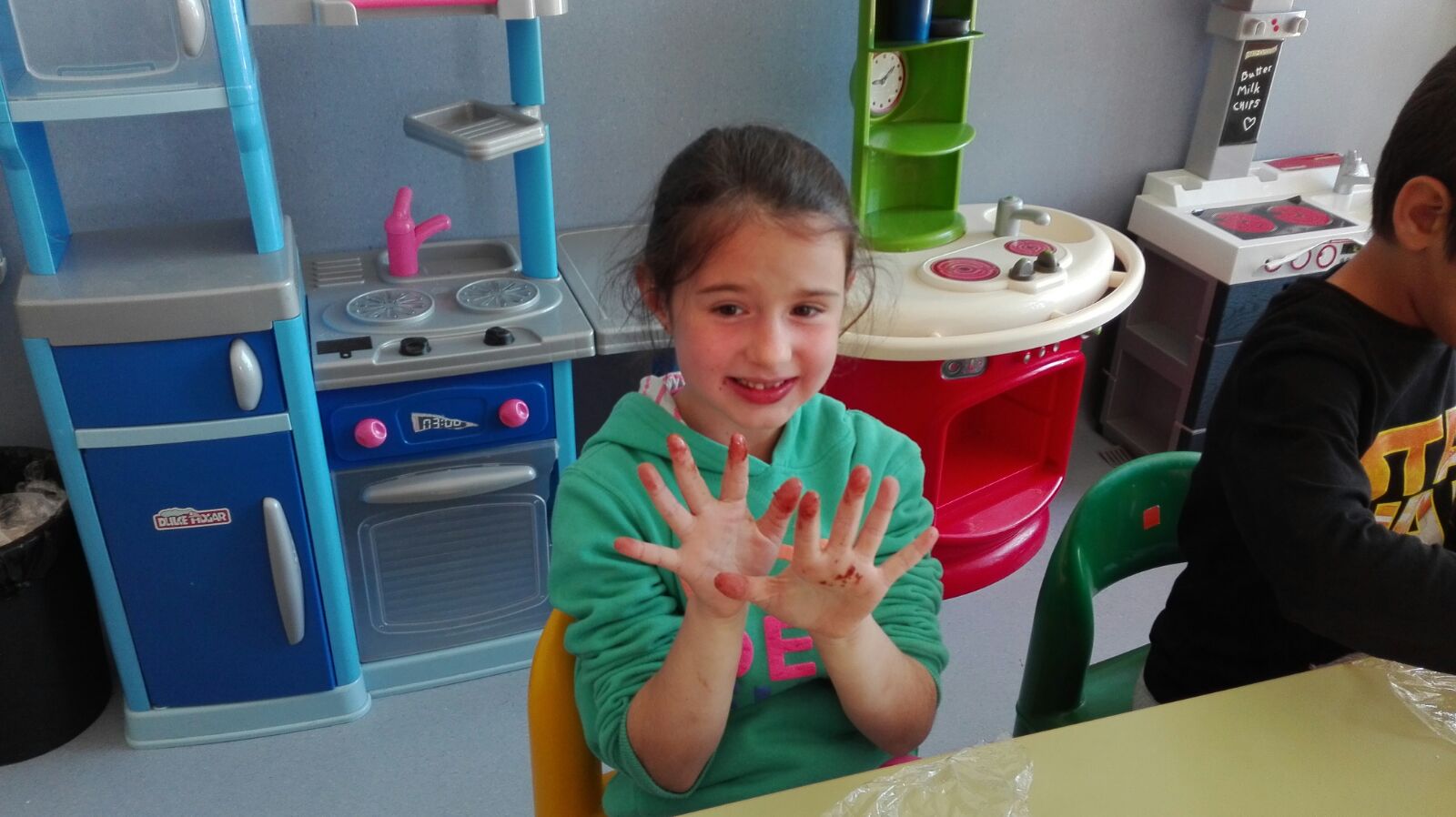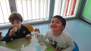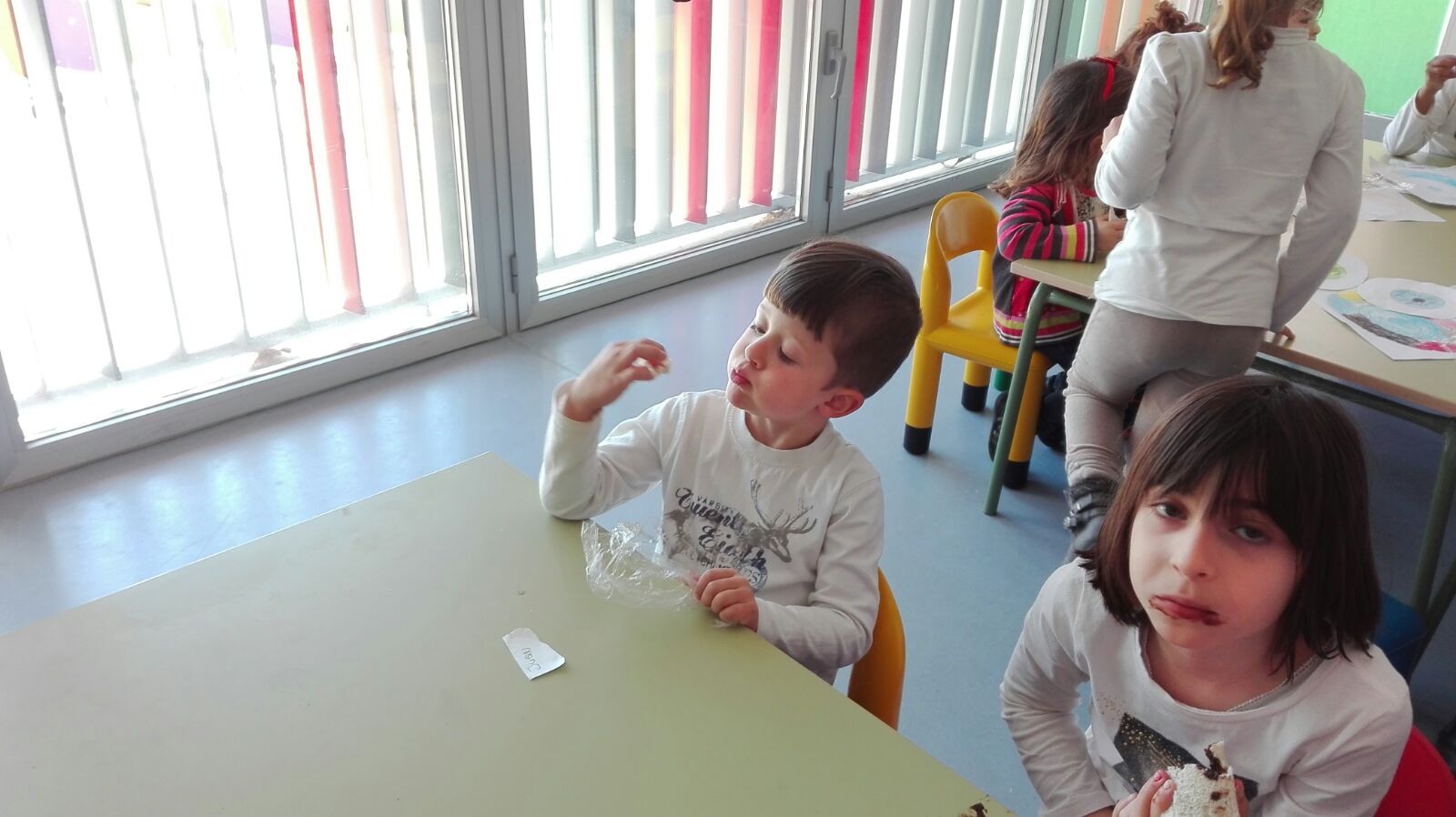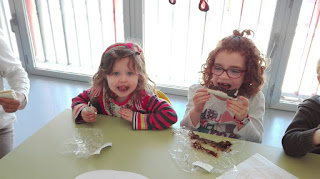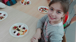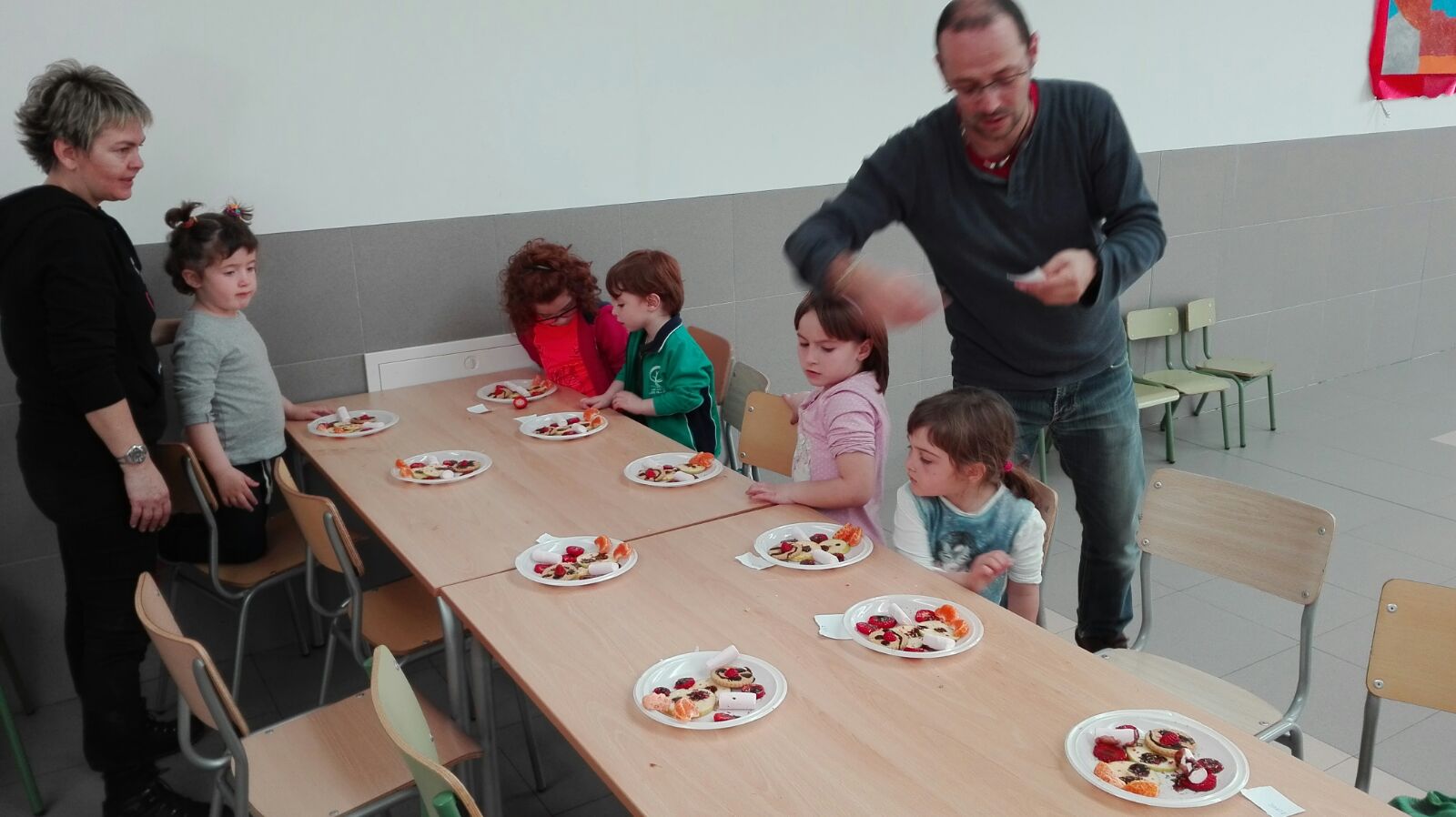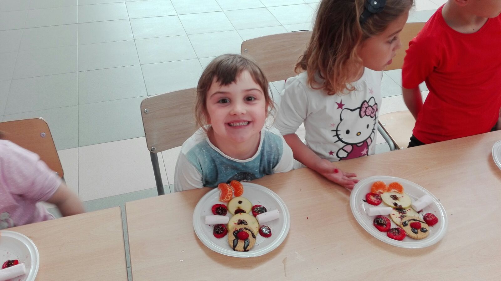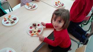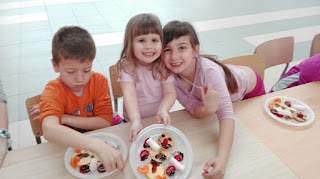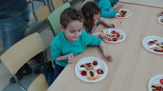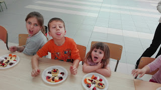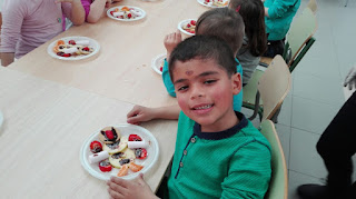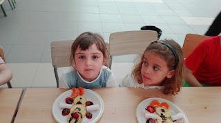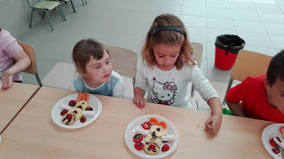 Jugamos al cazador, al zorro y al tiburón. Y como tanta cacería nos abrió el apetito nos metimos a la cocina a preparar un Olaff de frutas y chocolate.