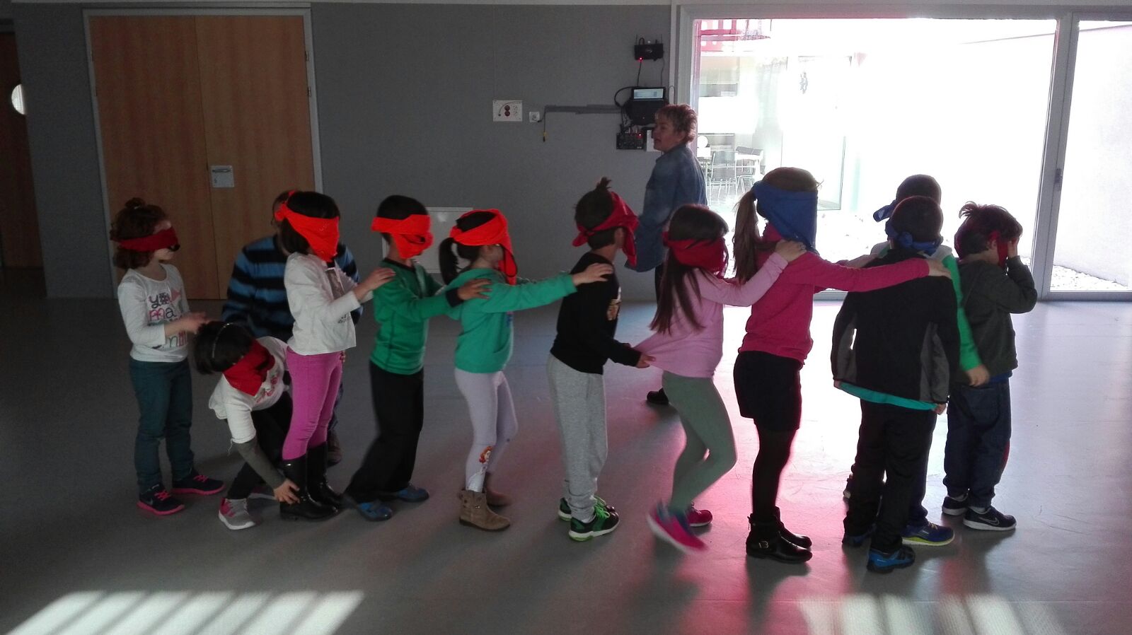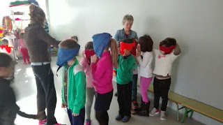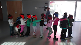 Tras el almuerzo, descubrimos lo difícil que sería nuestra vida sin poder ver, jugando a reconocernos sin ver, a balón ciego, etc…).
