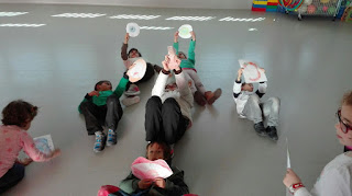 También hicimos canciones, bailes y juegos musicales y hasta un taller de percusión con un montón de instrumentos.