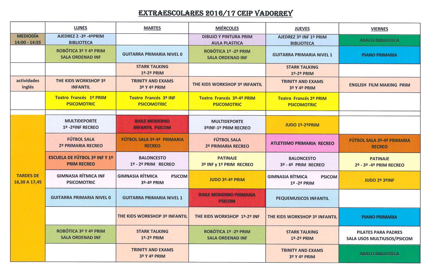 Como podéis ver se ha ampliado el horario de las actividades de por la tarde hasta las 17.45 para recuperar esos 10- minutos que se perdían a las 16.30.