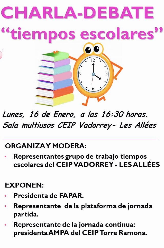 Organiza y modera esta charla los representantes del grupo de trabajo de tiempos escolares y exponen