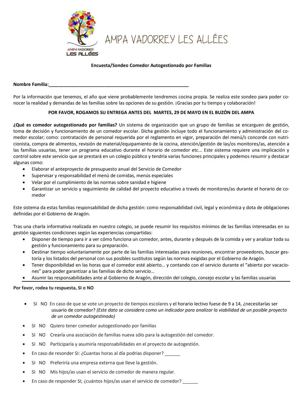 Entre hoy y mañana los niños y niñas van a daros la hoja para este sondeo.