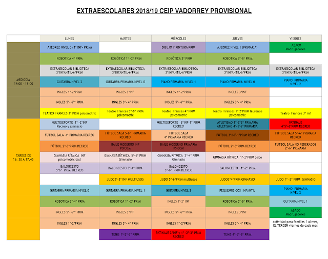 Os recordamos que todas las preguntas y las dudas que podáis tener serán respondidas en la reunión de extraescolares nada más empezar el curso, os informaremos. o podéis escribir a extraescoalresampavadorrey@gmail.com