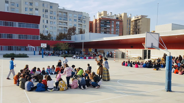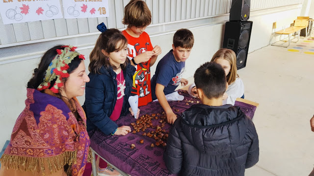 Es que nuestro cole lo tiene todo, porque es un cole especial, un cole que celebra el día de la castañera, que en Aragón es una figura muy querida y de gran importancia, un cole que no olvida los origenes aunque las castañeras sean más modernas y se pongan faldas de flores y luzcan corpiños vintage tejidos por alguna abuela molona y tengan lazos en las cabezas…