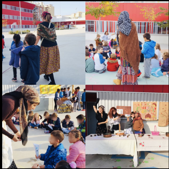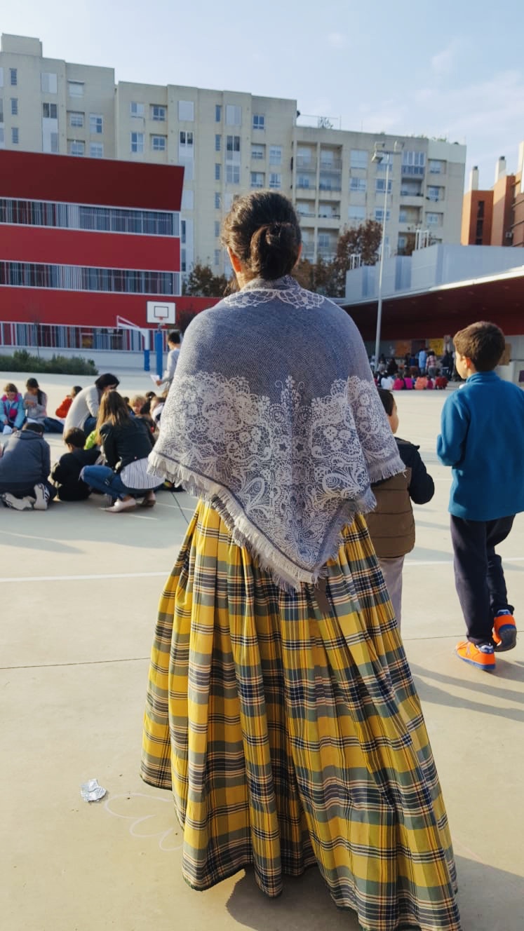 Es que nuestro cole lo tiene todo, porque es un cole especial, un cole que celebra el día de la castañera, que en Aragón es una figura muy querida y de gran importancia, un cole que no olvida los origenes aunque las castañeras sean más modernas y se pongan faldas de flores y luzcan corpiños vintage tejidos por alguna abuela molona y tengan lazos en las cabezas…