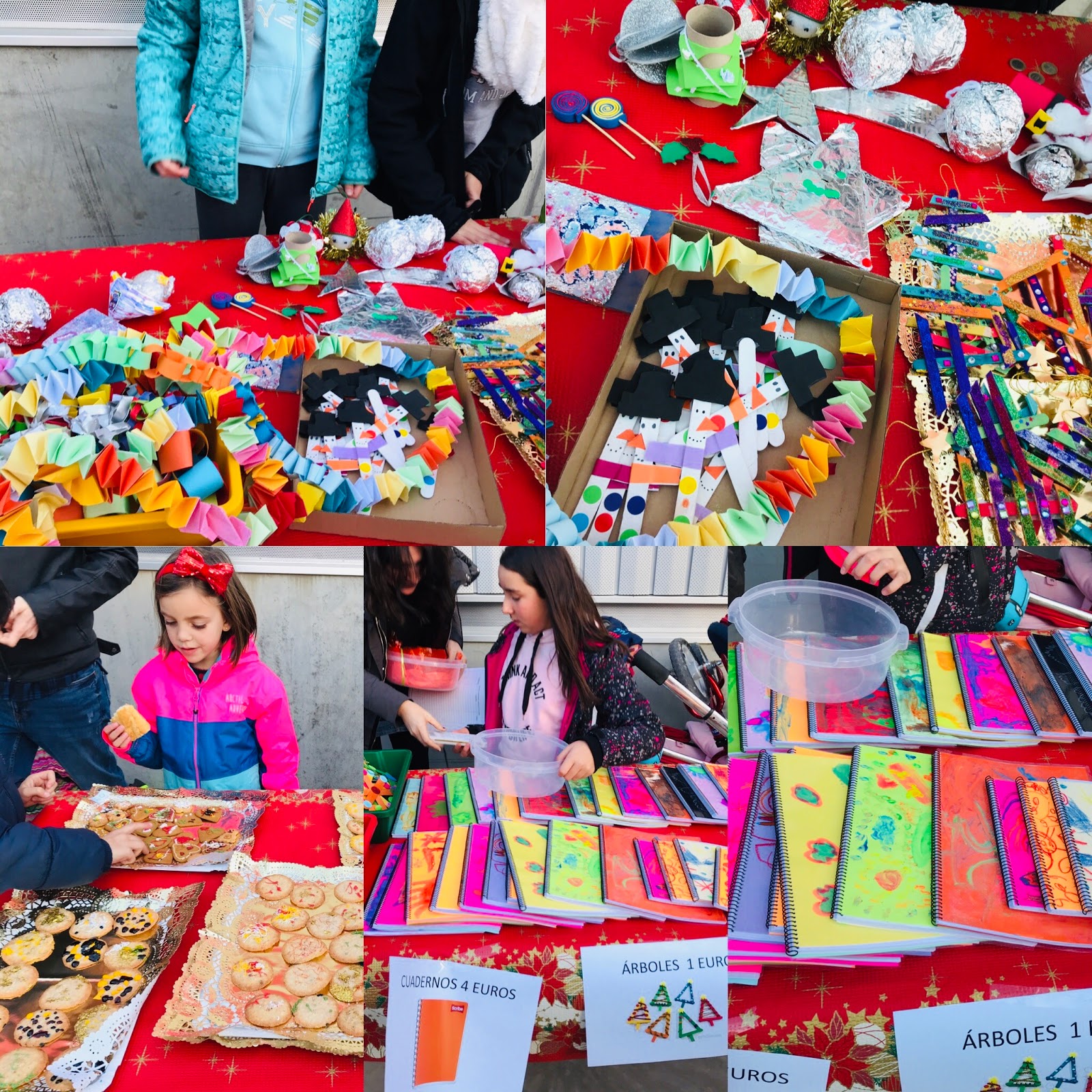 Pero no siempre es lo mismo, siempre intentamos mejorar un poco y este año, se ha unido a nuestra fiesta el mercadillo navideño organizado por el colegio, donde muchos niños y niñas han contribuido con sus manualidades… cadenas de colores, piruletas decorativas, nuestros niños y niñas ya se dan cuenta que el mejor regalo es dar. Todo un éxito este mercadillo navideño se han recaudado 450€ que irá un 20% a repartir entre Autismo Aragón y Asociación afectados de Delección Ip36, y el 80% para avanzar en la compra del mobiliario para crear nuevas zonas para la biblioteca.