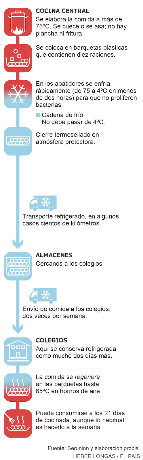 Se informa que durante el trascurso de las obras se suministraba la comidad de forma diaria, línea caliente. Tras la finalización de las mismas, se ha retomado el sistema de línea fría.
