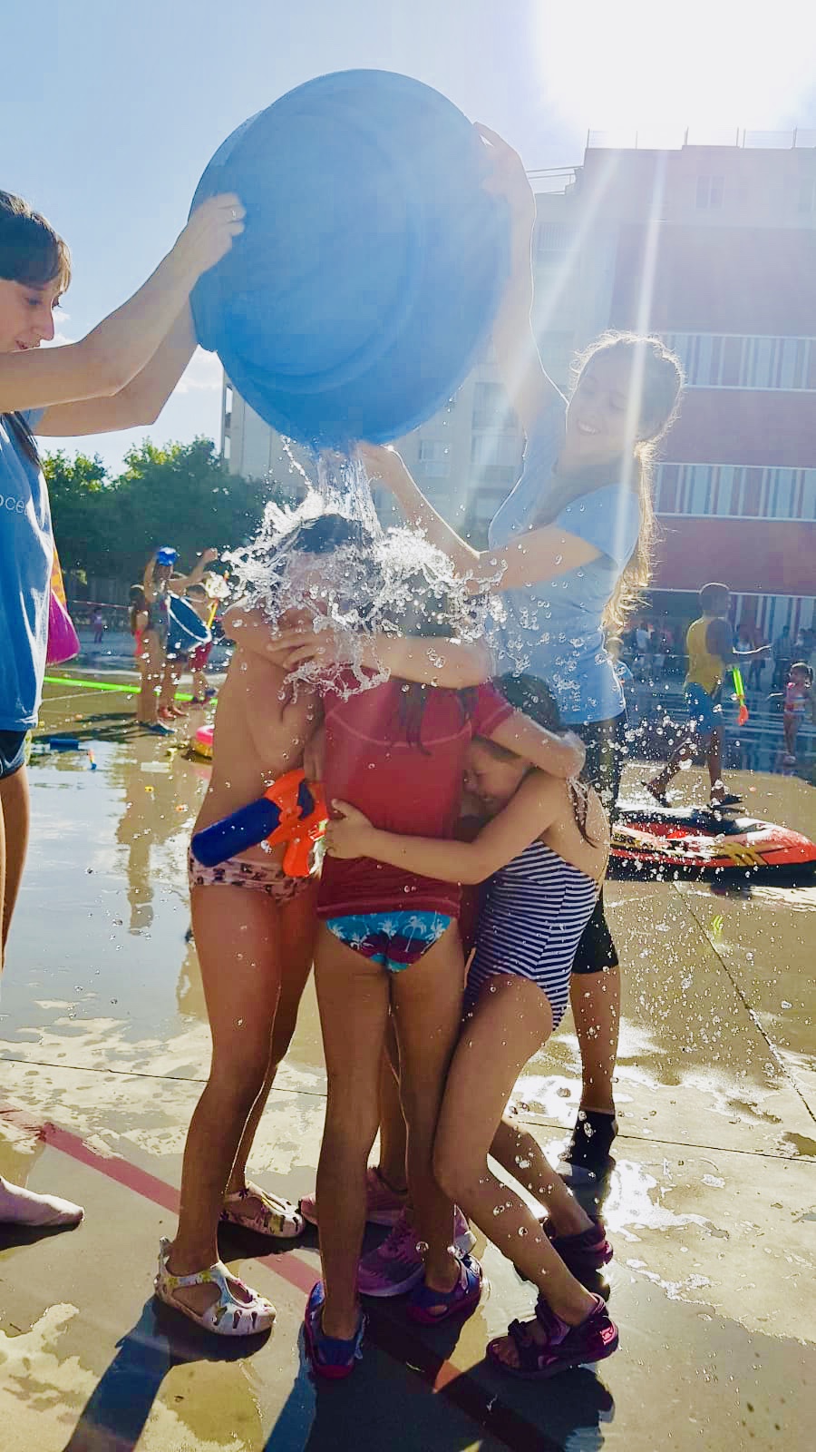 Y como estamos en el listado de las buenas personas, aquí está el rincón de la locura acuática. Es increíble como solo ver una manguera o una pistola de agua en el patio de un colegio haga brillar tantas sonrisas e iluminar tantos ojos.