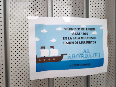Tras ellas, Guiomar enseñó un bonito poema en francés sobre un barco pirata. ¡Las niñas y niños del público se lo aprendieron tan bien que consiguieron que la pirata repartiese su botín de monedas de chocolate!
