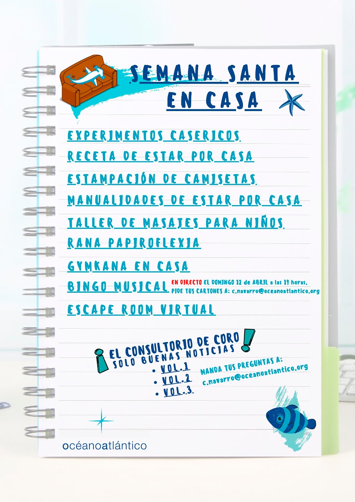 El equipo de Océano Atlántico os ha preparado un entretenido menú para todos los gustos y edades… Hasta incluimos una sección de humor que no os podéis perder ( El Consultorio de Coro)
