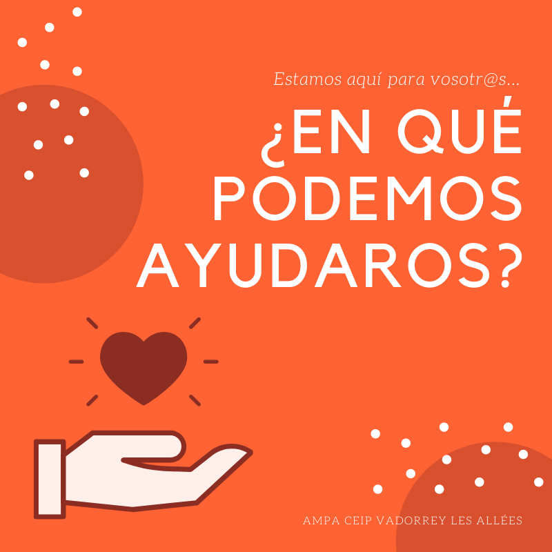 Desde el AMPA nos gustaría reiterar nuestra voluntad de seguir ahí durante esta situación excepcional, recogiendo vuestras necesidades, haciendo de intermediaria o buscando recursos útiles.