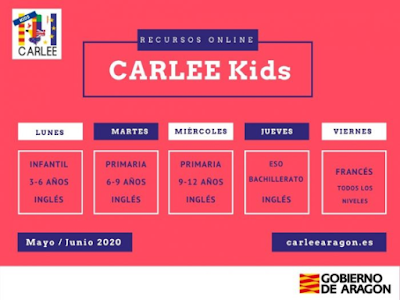 Os dejamos también la web del CARLEE, Centro Aragonés de Lenguas Extranjeras en Educación, con una iniciativa para ayudar en el aprendizaje de los idiomas en estos días de enseñanza a distancia, CARLEE KIDS. Cuentos en Youtube, trucos de aprendizaje del inglés y francés… ¡Muy recomendable!