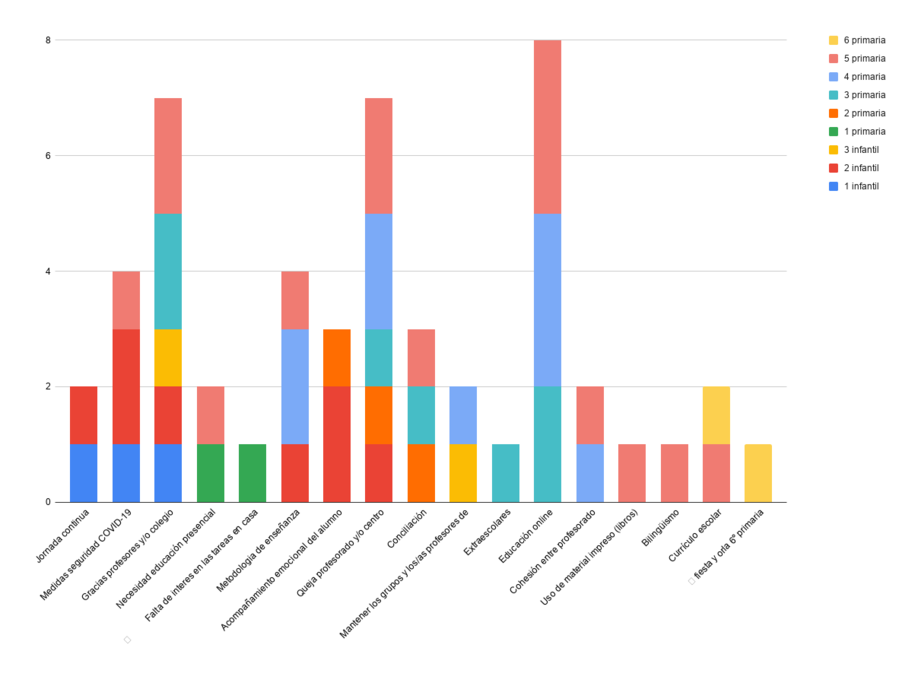 A veces es difícil ofrecer ayuda cuando la situación es nueva y no sabes muy bien cuáles son las carencias. Por eso, desde el AMPA quisimos recoger vuestras impresiones para, partiendo de ellas, poder perfilar mejor cuál podría ser nuestra función de apoyo en el próximo curso.