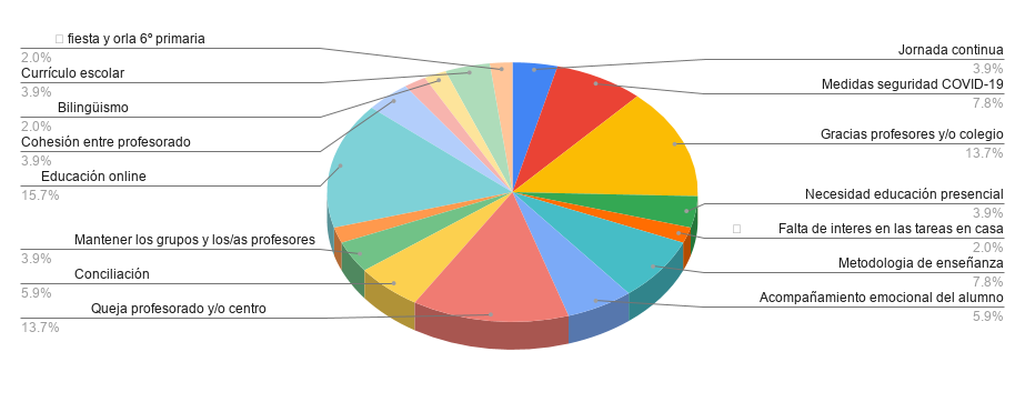 Con estos resultados que ahora os vamos a mostrar, no solo somos capaces de decidir entre tod@s qué pasos dar a partir de ahora, para ofrecer apoyo al centro y a las familias en estos momentos tan difíciles, sino que también podemos tomar el pulso a la comunidad educativa y conocer sus inquietudes.