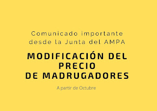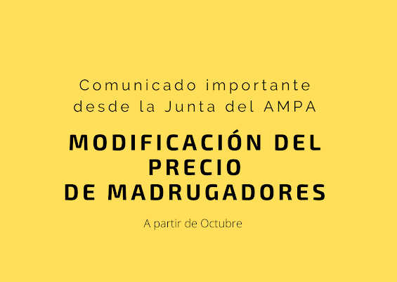 Pero, a día de hoy, no queríamos dejar pasar más tiempo sin avisar a las familias usuarias de madrugadores de la subida del importe de la mensualidad a 60€ a partir del 1 de octubre.