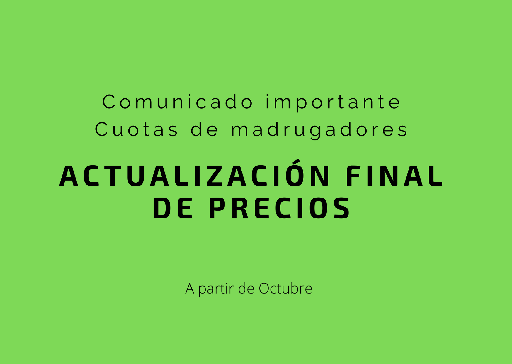 Tal y como os indicábamos en nuestra última publicación, el precio final de la cuota de madrugadores subía a 60€, pero quedábamos pendientes de seguir dialogando con Océano Atlántico con el objetivo de encontrar una solución que resultase más conveniente a familias y empresa.