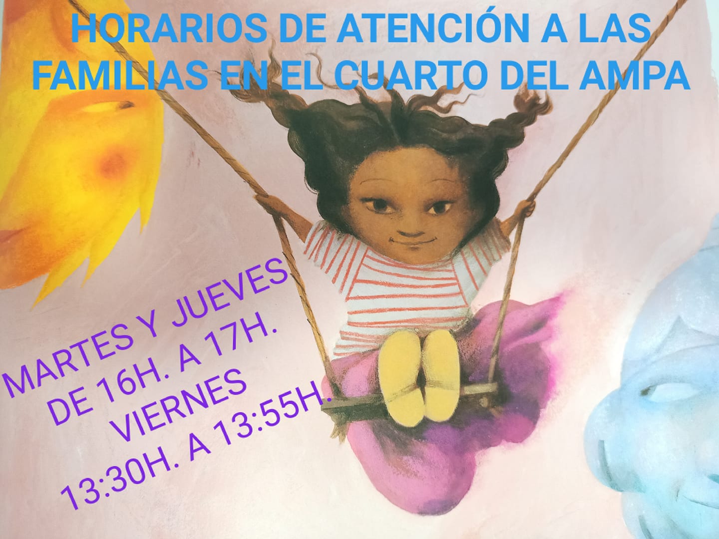 HORARIOS DE ATENCIÓN A LAS FAMILIAS por AMPAVadorrey | Ene 13, 2021 | Uncategorized | 0 Comentarios A partir de mañana estos son los horarios de atención a las familias del AMPA. Para comprar mascarillas infantiles y de adultos, pagar cuotas de este año, proponer ideas nuevas, contarnos vuestras inquietudes y ver cómo resolverlas… Enviar comentario Cancelar la respuestaLo siento, debes estar conectado para publicar un comentario.